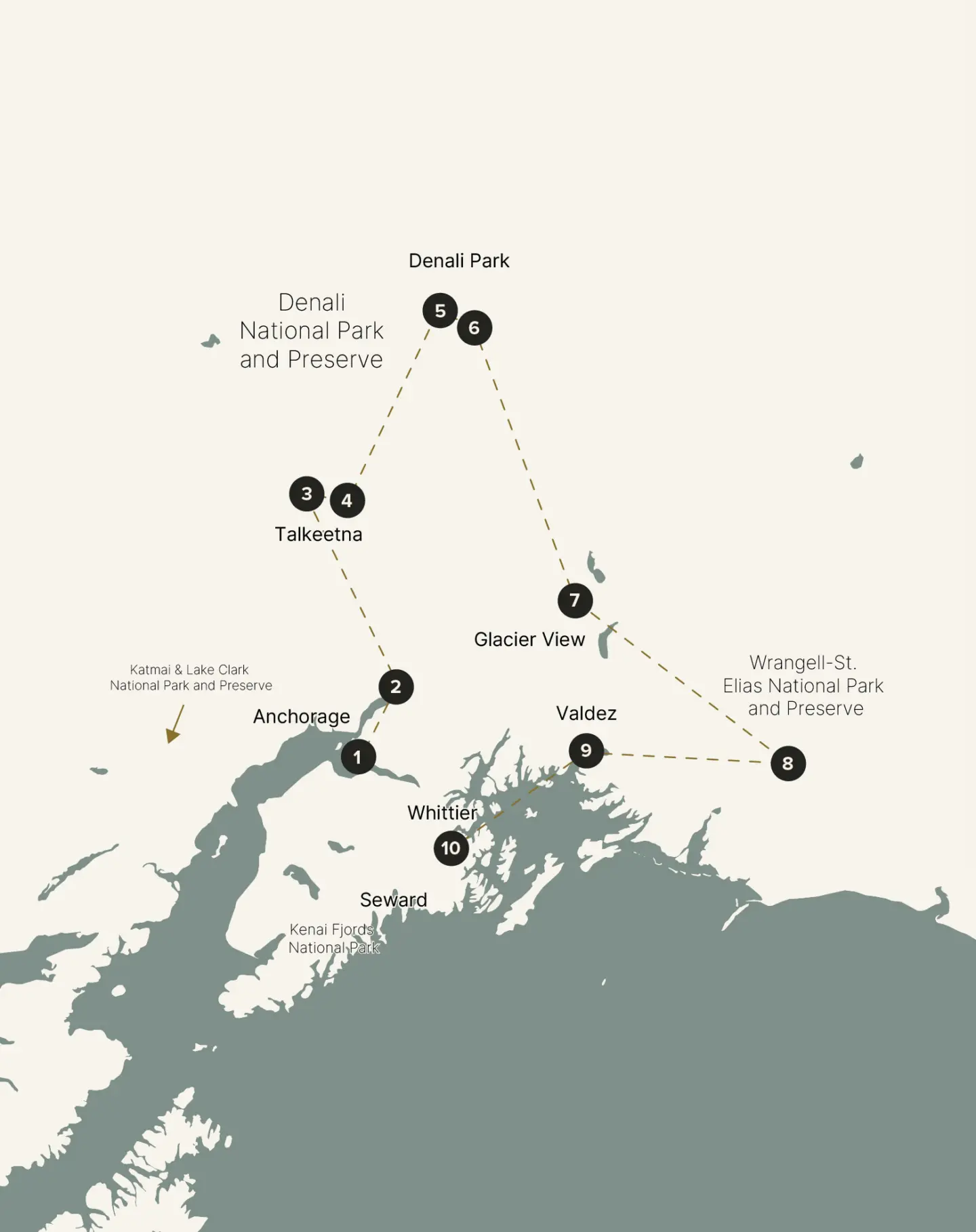 Your flight must arrive prior to 11 a.m. on Day 1 of your tour. If you cannot arrive by this time, your Tour Coordinator can book a pre-tour hotel in Anchorage for you. Similarly, if you need a post-tour hotel, we can arrange that upon request. Your tour typically arrives back into Anchorage at 10:30 p.m. via rail on Day 10 of your tour itinerary. There are earlier transportation options available; please ask your Tour Coordinator about them at the time of booking.