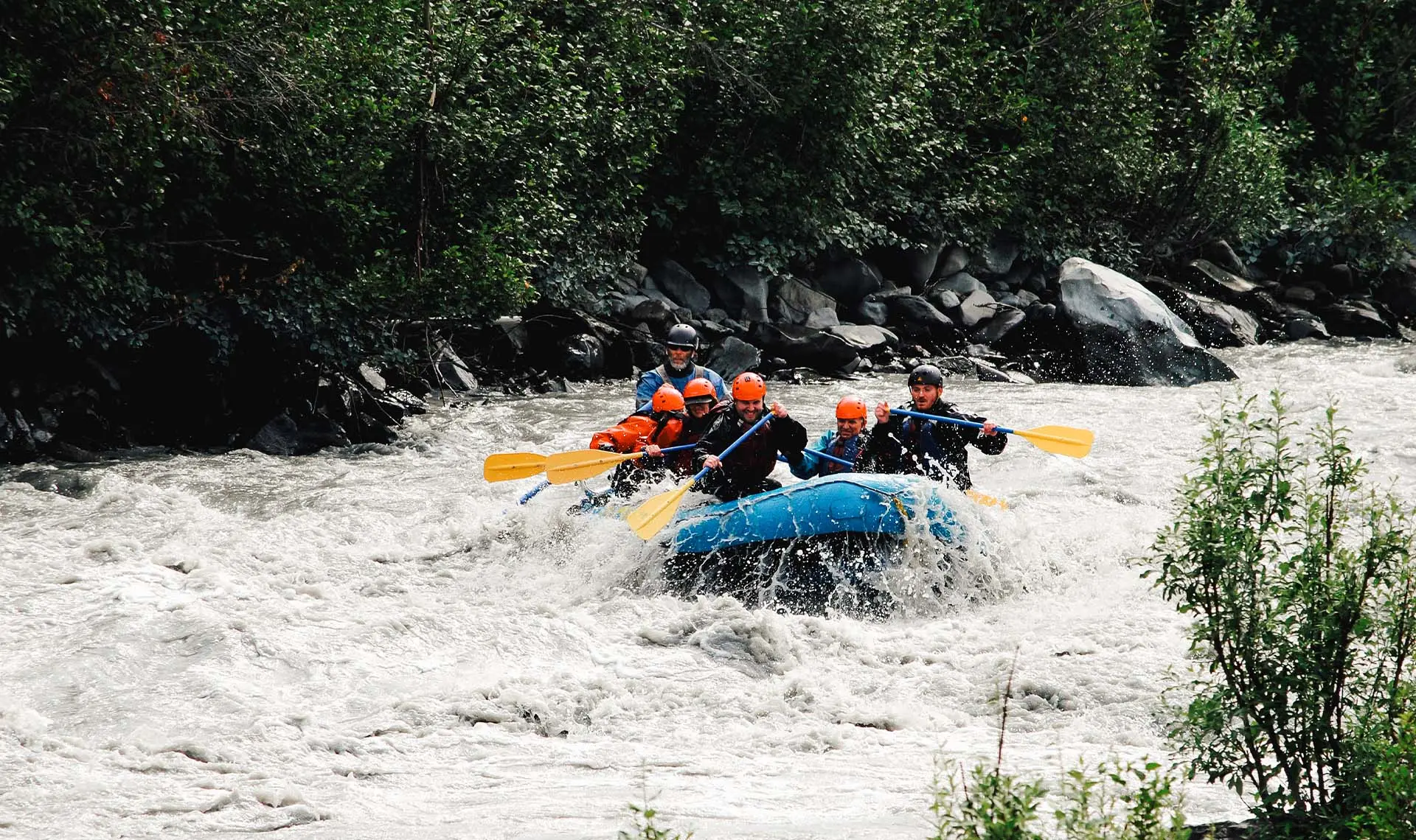 Our most popular option is to board the Denali Park Shuttle at the Wilderness Access Center and take a five-hour round-trip tour deep into the park. Lunch and a beverage are included. Remember your camera and binoculars! The bus stops regularly for up close animal sightings and about once an hour for restroom breaks. In the afternoon, you can opt to upgrade to a white-water raft adventure on the Nenana River for $147 per person.